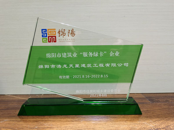 • 誠信經營 精益求精 | 我司再獲建筑業“服務綠卡”榮譽!